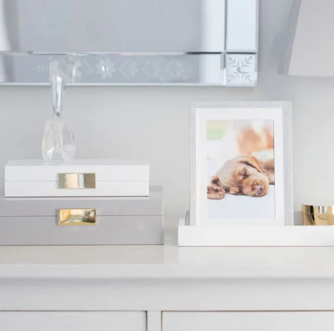 This charming chiffon jewelry box boasts a polished finish and a bright gold clasp with matching hinges. With a luxuriously soft suede interior, this jewelry box is perfect for keeping precious items safely stored.