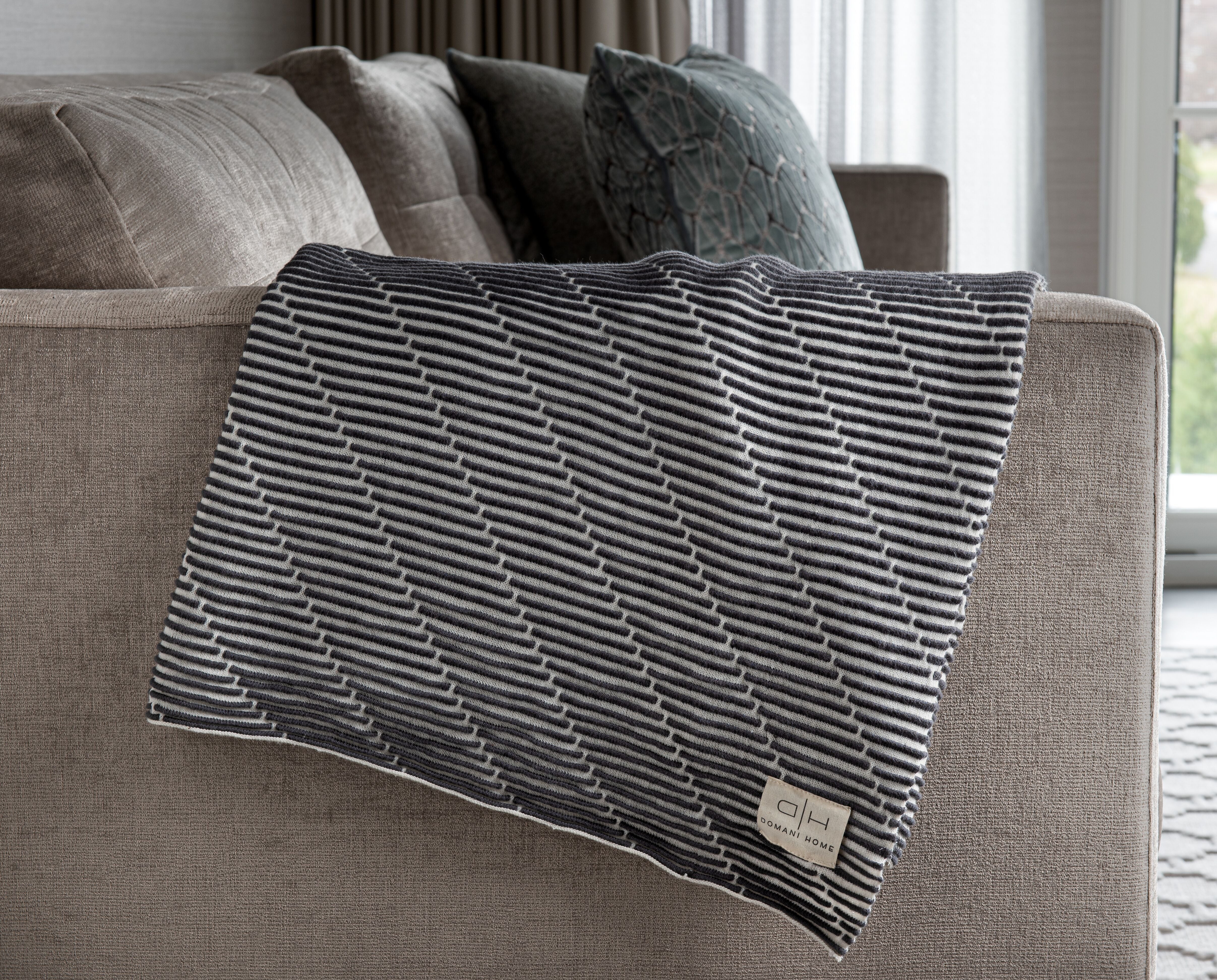 This Collection is designed with a linear design perfect to accentuate your couch or your bed. Made of 100% cotton with luxurious texture and feel. Drape it over your couch or wrap yourself in it and enjoy the warmth of this beautiful throw.