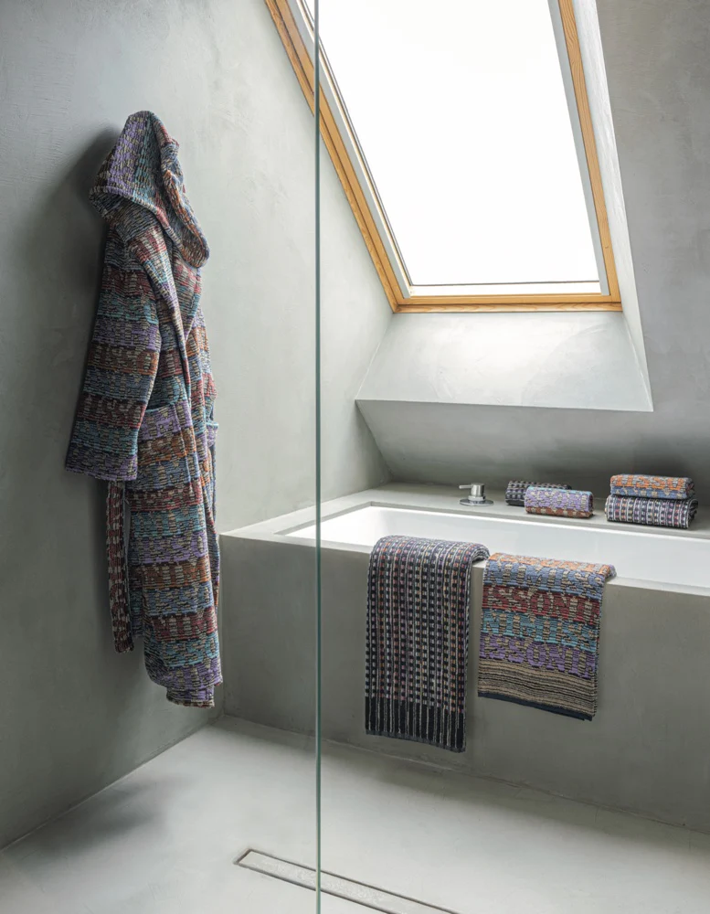 Missoni Home hooded Blake bathrobe features a multi - striped Missoni logo pattern. It’s made from plush cotton terry with a hooded neckline and large patch pockets on the side. Secure the belted waist for a more defined silhouette.