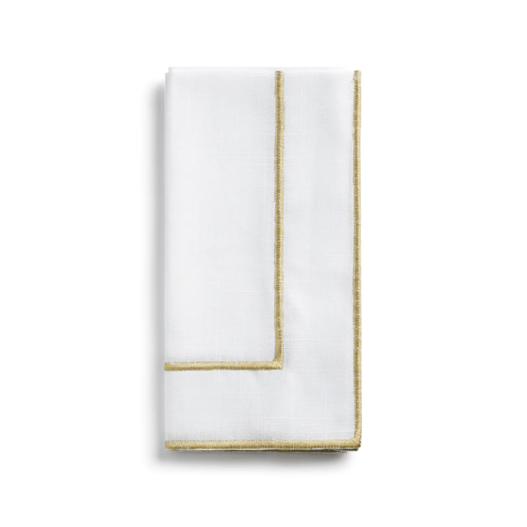 These elegant 2 stripe embroidered napkins, are a classic that will easily coordinates with your table scape.